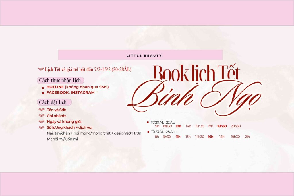 Little Beauty, được thành lập vào năm 2019, đã có mặt tại Quận 3, Quận 7, Phú Nhuận, Bình Thạnh, Gò Vấp, không chỉ là một thương hiệu làm đẹp mà còn mang đến một góc nhìn mới về việc chăm sóc bản thân. Chúng mình tin rằng làm đẹp không chỉ là thay đổi diện mạo bên ngoài mà còn là niềm vui khi biết trân trọng và quan tâm đến từng chi tiết nhỏ – những điều mà người khác có thể ít để ý tới.