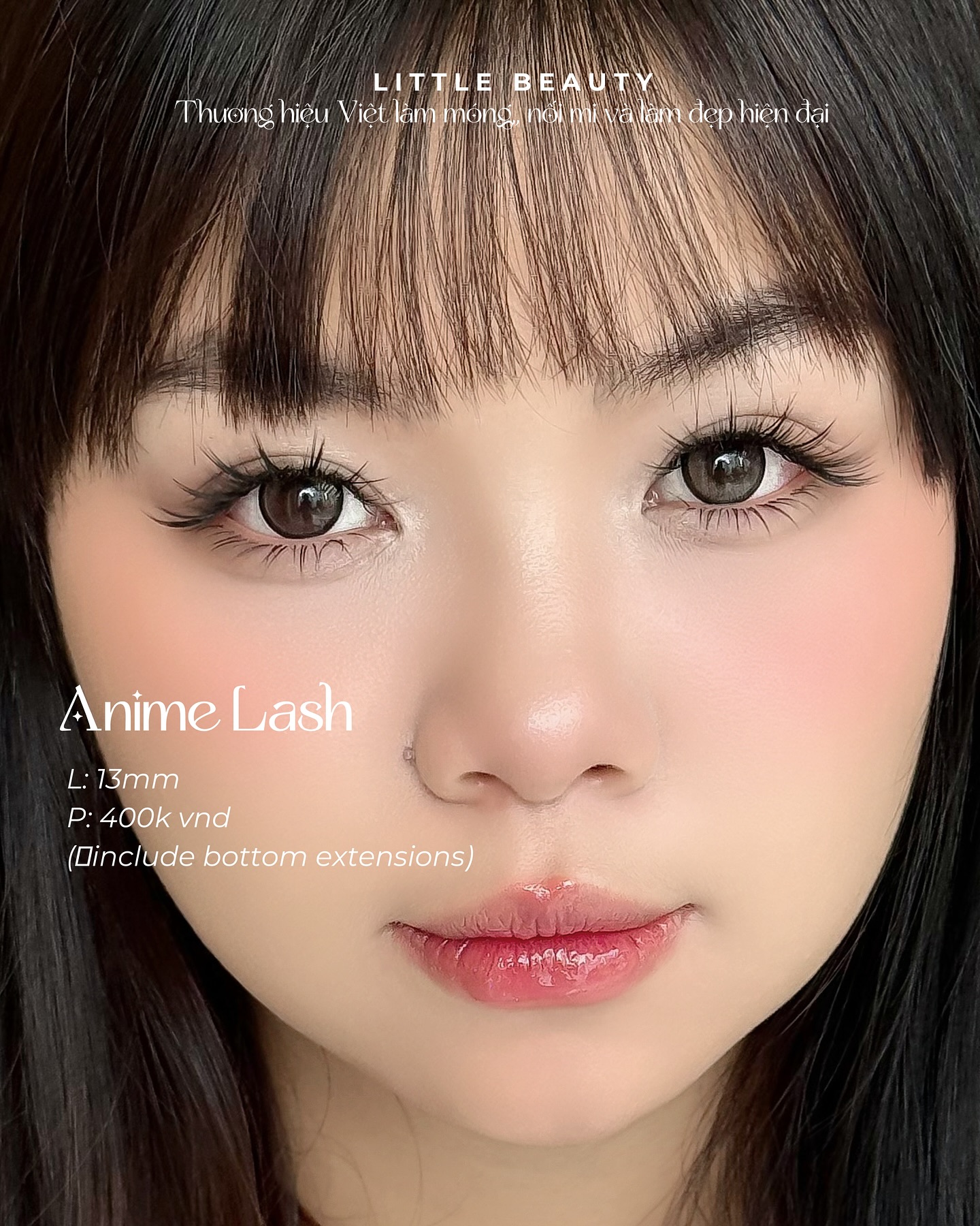 Nối mi Anime lấy cảm hứng từ những nhân vật hoạt hình Nhật Bản, mang đến đôi mắt to tròn, long lanh như búp bê. Kiểu mi này sử dụng các sợi mi dài, cong vút, tập trung ở phần giữa mắt để tạo hiệu ứng mắt to. Tại Little Beauty, chúng tôi đảm bảo mi Anime được nối chắc chắn, không gây hại mi thật, với độ bền cao. Kiểu nối mi thiết kế này rất được ưa chuộng bởi các bạn trẻ yêu thích phong cách dễ thương, nổi bật. Dù bạn đi dự tiệc hay chụp ảnh, mi Anime luôn giúp bạn thu hút mọi ánh nhìn. Hãy đến Little Beauty để thử ngay kiểu mi Anime và cảm nhận sự khác biệt mà nối mi thiết kế mang lại!